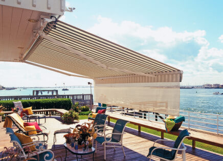 Replace your sun damaged or faded retractable awning fabric with a new 1 acrylic fabric cover from DIY. Fully custom made to your exact specifications, a new awning fabric replacement, featuring Sunbrella fabric will renew your awning in both function and beauty. The Gennius is an innovative new awning designed to improve and expand outdoor dining and entertaining spaces.
